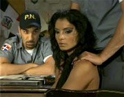 | Dos policías abusando de Lucy Belle Posted: Lucy Belle protagoniza una tórrida escena de sexo en una comisaría de policía latinoamericana . Los dos hombres de uniforme abusan de la morena rumana , chantajeándola para que folle con ellos en la mesa del despacho de la oficina hasta correrse en su boca , después de hacerla una doble penetración |
